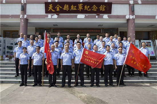 四川新闻网雅安7月2日讯(王一祎 罗利瑶 文/图)为庆祝中国共产党成立98周年,7月1日,天全县公安局组织机关、刑侦、治安、交警、监管、城厢支部在天全县红军纪念馆开展“不忘初心、牢记使命”主题教育活动。县公安局党委副书记、政委王小可,党委委员、纪委书记李成荣,各支部在家党员同志、入党积极份子参加活动。 全体同志在红军纪念馆讲解员的带领下同志们参观了红军长征在天全展厅、徙都往事展厅、感恩馆、红色诗词书法展、红军故事版画展等,了解了天全的红色文化和历史传承。参观结束后,全体同志重温了入党誓词,并在红军纪念馆前合影留念。 参加活动的同志纷纷表示,要不忘初心、牢记使命,不断增强“四个意识”、坚定“四个自信”、做到“两个维护”。在今后的工作中将更加坚定理想信念,积极在岗位建功立业,用实际行动践行新时代赋予的新使命,以优异成绩迎接新中国70周年华诞。 |