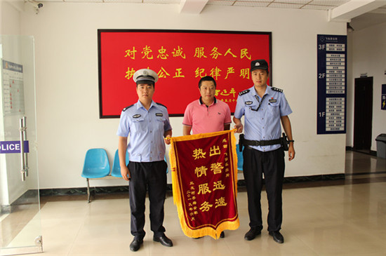四川新闻网雅安7月5日讯(郑译林 任志琳 田崇夏 文/图)7月2日中午,李某某老人家属将一面印有“出警迅速、热情服务”的锦旗送到芦山县公安局飞仙派出所,感谢民警及时寻回走失老人。