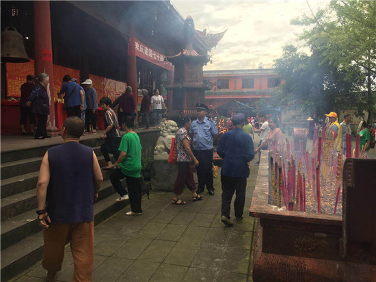 四川新闻网雅安7月22日讯(王一祎 石跃洪 文/图)7月21日,农历六月十九,一年一度的“慈郎寺庙会”如期举行,为确保庙会活动安全,天全县公安局城厢派出所四措施圆满完成安保工作。