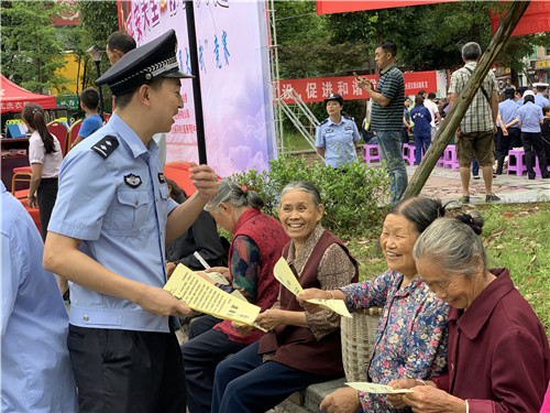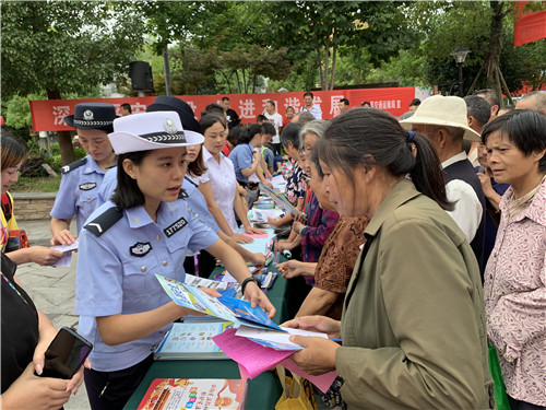 四川新闻网雅安7月26日讯(王一祎 文/图) 为进一步提升人民群众对平安天全建设的知晓率和参与度,提高群众对平安天全建设的满意度,推进平安天全建设深入开展。7月25日,由天全县委政法委主办的“构建平安天全 促进经济发展”平安建设集中宣传活动在天全县音乐广场举行,天全县公安局积极参与。 活动中,县公安局结合自身实际,围绕平安天全建设宣传内容,通过发放《文明出行安全交通实用手册》、《安全文明出行提示系列宣传图》等宣传材料,向过往群众普及公共安全、交通安全、校园安全等相关政策法规和安全防范知识。通过展示毒品仿真样品,耐心讲解毒品的危害性,让往来群众自觉珍惜生命远离毒品。通过悬挂“依法打击违法犯罪活动,确保人民群众安居乐业”宣传标语,让往来群众看到公安机关严打犯罪的决心。 活动共发放宣传手册、宣传单1200余份、悬挂横幅标语1条,受教育群众达2000余人。进一步增强了群众对平安建设、扫黑除恶的认识,让更多的群众参与到平安天全建设中来,共同营造和谐、稳定、幸福、平安的社会环境。