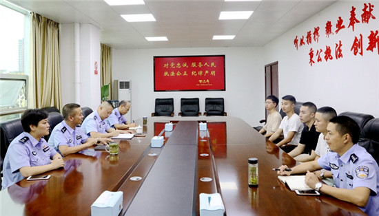 四川新闻网雅安8月2日讯(高坚维 文/图)7月30日上午,芦山县公安局组织2019年度新招录的4名新民警召开入职座谈会。会议由县局党委副书记、政委竹林武主持。 竹林武代表县局党委对新警加入芦山公安大家庭表示欢迎和祝贺,并寄语新警:一要讲政治、顾大局。以习近平新时代中国特色社会主义思想为指引,提高政治站位,抓好政治学习,牢固树立“四个意识”,坚定“四个自信”,践行“两个维护”;二要讲学习、提素质。把握时光,在奋斗者的新时代抓住机遇努力提升自己,学习好、掌握好、应用好理论知识、业务知识,为做好公安工作打下扎实的基础。三要讲纪律、守规矩。时刻牢记自己是一名人民警察,要摆正位置,尽快适应角色转变,严守各项纪律制度,树立良好的人民警察的形象。四要讲奉献、有作为。新的开始就有新的挑战,作为新警要有敢于担当的勇气,有善于作为的态度,甘于奉献、努力拼搏,为推动芦山公安事业不断前进贡献自己的一份力量。