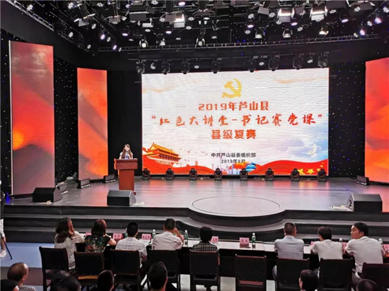 四川新闻网雅安8月12日讯(王梦倩 文/图)近日,芦山县举行“红色大讲堂——书记赛党课”县级复赛活动,全县各乡镇(街道)党委(工)委副书记、组织委员和县级部门机关党组织书记、村(社区)党支部书记代表等共80余人到场参加活动。