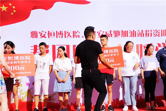 四川新闻网雅安8月16日讯(王梦倩 文/图) 8月15日上午,“帮困助学,情暖学子”捐资助学活动在雅安恒博医院举行。此次活动由雨城区妇联主办,雅安恒博医院、雅安威驰加油站/名山玉丰加油站各捐资20000元,为10名雅安田家炳中学、10名雅安第二中学以优异成绩考上大学而又家境困难的应届高考生,分别提供上大学资金捐助2000元。活动共计捐赠爱心资金40000元。