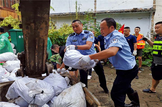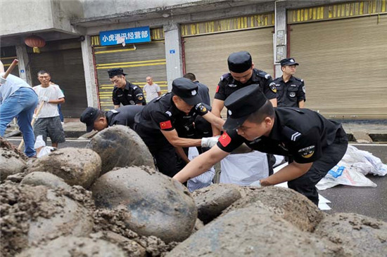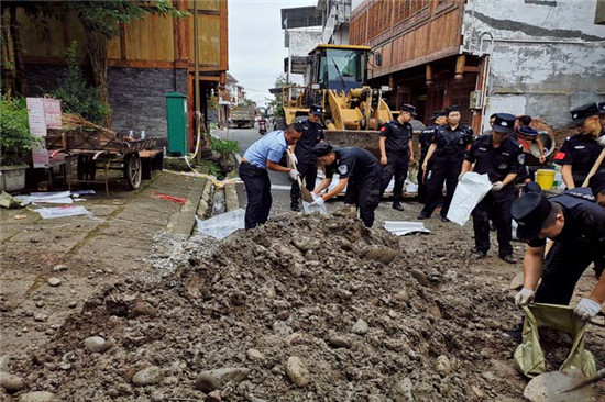 四川新闻网雅安8月22日讯(任剑 任志琳 文/图)8月20日凌晨,芦山县境内普降暴雨,多处出现内涝,部分堤坝相继发生险情。上午8时46分,芦山县公安局特巡警大队在接到抢险指令后,迅速召回巡逻防控队员,立即前往龙门镇青龙场村参与抗洪抢险任务。 在抗洪抢险现场,特巡警队员按照抢险指挥部安排,参与搬运物资、装填沙袋、封堵桥梁、疏导交通、劝离危险区域等多项救援任务。期间,支部党员充分发挥模范带头作用,勇挑重担,叫响向我看齐的口号;其他队员也纷纷向党员同志学习,发扬不怕脏、不怕苦、不怕累的战斗作风,合力同心完成了当前既定任务。 下午6时许,川地灾指办发布了雅安市中北部山区预计还有一次强降雨的预警信息,地质灾害风险较高。目前,特巡警正在龙门参与抗洪抢险。