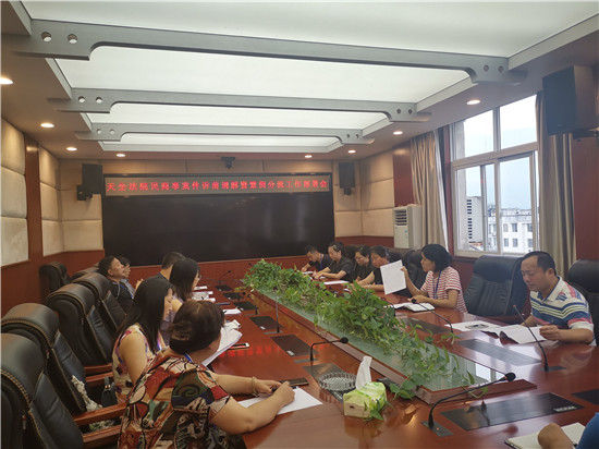四川新闻网雅安8月23日讯(高成玲 文/图) 8月19日,天全法院召开了民商事案件诉前调解暨繁简分流工作部署会,民商事团队员额法官、立案庭及天全县诉调对接人民委员会全体人员参加了会议。 会议指出:一是做好诉讼服务中心建设工作,要将“辅分调裁审”解纷机制建成并运行,改变以往按流程、分部门、分人办理诉讼事务的工作模式,将程序性事务由后台推向前台集中公开办理,健全完善诉讼服务中心功能。二是先调案件工作细则,对先调案件的分配、司法确认案件审结问题、系列案集中排期审理以及案件生效当日完成文书上网等进行了安排。三是繁简分流工作衔接,指出繁简分流的具体细化分配,依法高效审理民商事案件,实现简案快审、繁案精审、类案专审。