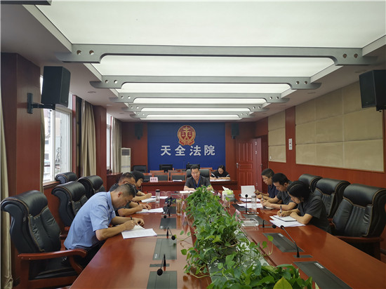 四川新闻网雅安8月26日讯(高成玲 文/图)8月23日,天全县人民法院召开专题会议,对全市法院诉源治理实质化现场会工作进行部署。党组书记、院长秦明文主持会议,院领导、办公室主任、法警大队负责人以及立案庭负责人参加了会议。 会上,立案庭负责人就我院诉源治理实质化工作现场会推进情况向院领导作汇报,并就前期准备工作情况作详细说明。各参会人员分别对本院诉源治理实质化现场工作会提出建议,并进行了热烈的讨论。
