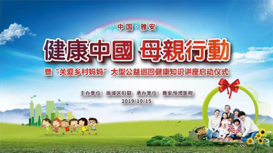 “健康中国,母亲行动”,雅安恒博医院定当会尽自己的力量普及健康知识,传播健康理念,倡导健康生活方式。 动员广大母亲养成健康习惯,当好家庭健康的监督员,带动家庭成员为建设健康中国助力。(雅安恒博医院供稿) |