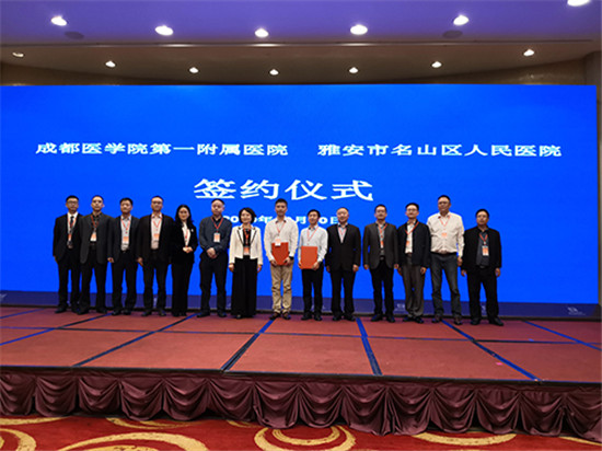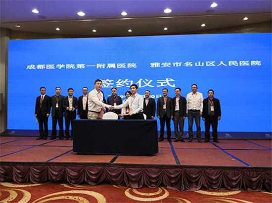四川新闻网雅安10月22日讯 10月20日下午,在成都医学院第一附属医院第二届医联体大会上,成都医学院第一附属医院与雅安市名山区人民政府签署托管名山区人民医院协议。今后,成都医学院第一附属医院与名山区人民医院将在管理运营、学科及人才队伍建设、教学科研等多方面开展深度合作,建立紧密型医联体关系。 在托管期间内,成都医学院第一附属医院将选派管理团队和业务骨干入驻名山区人民医院,并定期选派专家团队到区人民医院开展业务指导,通过专家巡诊、人才培养、远程医疗、项目申报、教学查房等方式,促进名山区人民医院相关专业和医疗技术水平持续提升,努力实现医疗服务同质化。