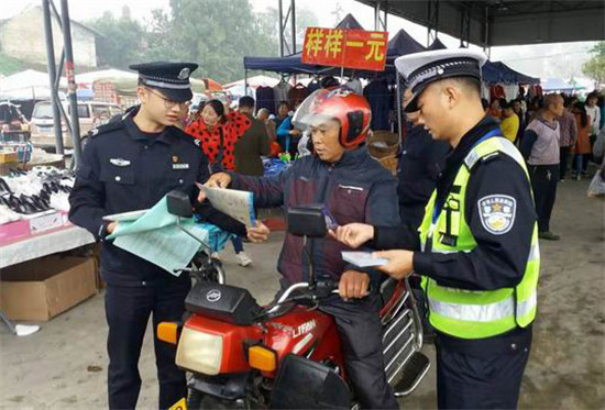四川新闻网雅安10月22日讯 为进一步提高人民群众交通安全意识,预防和减少道路交通事故发生,确保秋季辖区道路交通安全稳定,近日,名山交警大队组织警力,联合黑竹派出所民警深入辖区黑竹镇,积极开展交通安全进村入户宣传活动。 活动中,宣传民警以黑竹镇赶集日为契机,深入黑竹镇集市,向群众发放交通安全宣传资料,并结合黑竹镇辖区道路交通特点,列举典型交通事故案例,向群众讲解交通事故成因及后果,通过交通案例警醒广大群众,自觉遵守交通法规,杜绝交通违法行为,养成良好的驾乘车习惯,抵制、拒乘非法营运车辆。