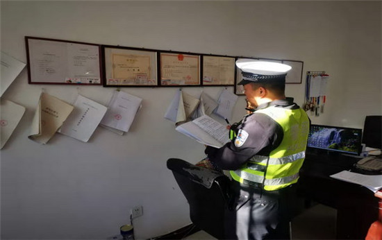 访查中,民警在实地查看了企业涉危生产、储存、运输情况,了解了涉危运输车辆日常维护、运输线路、运输时间及驾驶人资质等管理情况,检查了企业安全管理制度落实情况、日常管理台账建立登记等情况后,结合摸底排查中发现的问题和漏洞,就进一步加强源头安全管理,认真落实安全管理制度,坚决把好事故预防源头管理关进行了强调,并签订了整改通知书。