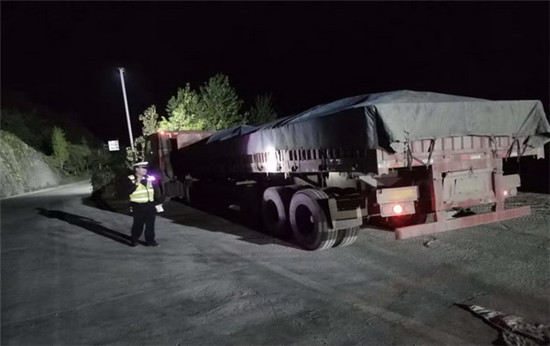 四川新闻网雅安10月31日讯 为持续保持货车“双超”治理高压态势,全面推进“迎庆5号”专项行动,确保道路交通和社会治安形势平稳。汉源县公安局交警大队采取 “白+黑”工作模式,坚持持续作战,于10月29日晚,连续查获4起货车超限超载交通违法行为。