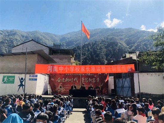四川新闻网雅安11月12日讯(邓婕 肖文芳 文/图)为了进一步加强学生的道德素质教育和法治教育,提高全校师生的法律意识和安全意识。近日,汉源县河南中小学邀请汉源县大树镇派出所民警殷浩然走入校园,为全体师生上了一堂生动的法制专题课。