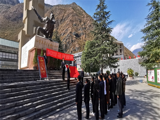 四川新闻网雅安11月19日讯(邓婕 徐玉莲 文/图)近日,汉源县清溪区学校党支部组织全体党员开展“不忘初心、牢记使命”重走长征路,红色教育活动。全体党员先后来到了石棉县安顺场全国初心体验教育基地和红军飞夺泸定桥纪念馆,全体党员向烈士纪念碑敬献了花篮,集中参观了中国工农红军强渡大渡河纪念馆,认真聆听了《大渡河畔英雄多》《信仰的力量》和《勇士精神代代传》等微党课,重温了入党誓词。