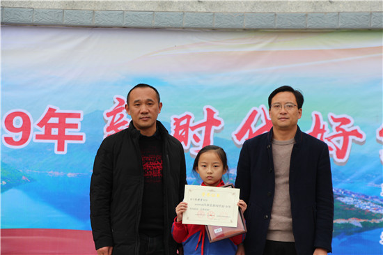 发布仪式上,县文体旅局领导王定军与县教育局副局长袁巧娟分别为获得2019年汉源县“新时代好少年”称号的同学颁发荣誉证书。活动最后,全校一千多名师生共同发出争做“新时代好少年”的倡议。