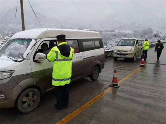 据了解,国道108线拖乌山冬管路段从大营盘至山顶,已是白茫茫一片,山顶气温低至零下2℃,阴山段有暗冰。目前,石棉公安交警和栗子坪派出所在拖乌山冬管路段指挥疏导过往车辆安全通行,并组织冬管服务队为车辆加装防滑链条,全力救助受困车辆,确保滞留车辆安全过境。