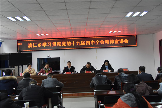 在清仁乡会议室,白新从党的十九届四中全会的重大意义、主要内容、“十三个显著优势”、总体目标等方面生动的向村组干部作了宣讲。鼓励大家要结合“不忘初心、牢记使命”主题教育深入学习、深刻领会、贯彻落实好党的十九届四中全会精神、省委十一届六次全会精神,坚定“四个自信”,做到“两个维护”,努力学习、开拓创新,为芦山县委“三个三”发展定位、“城乡治理”、“乡村振兴”事业做出新的贡献。