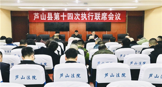 会议首先传达学习了《中央依法治国委员会关于加强综合治理从源头切实解决执行难问题的意见》文件精神,县公安局、县发改局、县住建局、县市场监督管理局分别就涉嫌拒执犯罪侦查、失信联合惩戒、建筑企业项目备案协查、涉案企业重大事项变更通报,落实具体协助义务联络人和常态开展协助工作作发言,着力推动联合惩戒制度化、常态化落地落实。芦山县人民法院通报了“基本解决执行难”以来工作总体情况并提出了下一步工作打算。通报显示,2016年以来,芦山县人民法院共受理各类执行案件3154件,结案3081件,未结73件,结案率97.68%;共执行到位金额20026.97万元;实际执结率53.22%,执行完毕率32.21%,执行完毕案件结案平均用时65.94天/件。最高人民法院衡量执行工作“3+1”核心指标数据,其中有财产可供执行案件法定期限内实际执结率99.84%;无财产可供执行案件终本合格率100%;执行信访办结率100%;执行案件整体执结率92.37%。