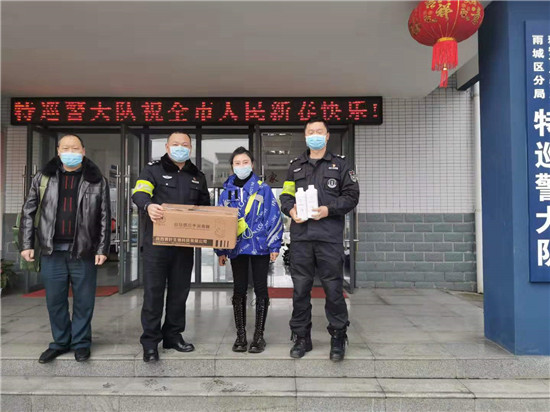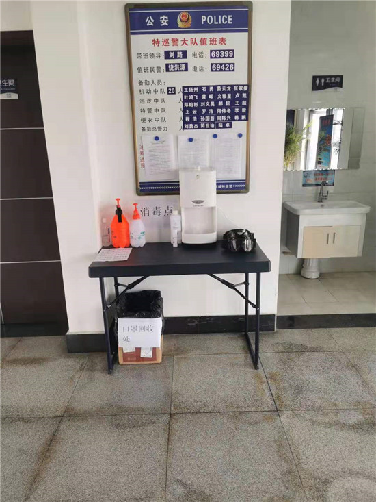 1月29日上午,特巡警大队收到热心市民陈女士送来的自动感应手部消毒机一台,并对值班民警说“给大伙儿送台消毒机,感谢奋战在防疫一线的同志,你们辛苦啦!”