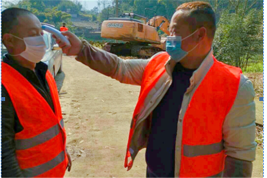 防疫期间安排专职防控人员,负责日常疫情防控工作。要求全员佩戴口罩、每日检测体温2次、对建设工地和办公区等重点区域消毒2次,以及为施工人员办理工作证、车辆通行证,对往来施工车辆进行消毒,督促建立健康台账,每日记录健康情况,做到不留防控死角,防疫施工两不误。 有序恢复生产