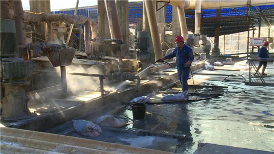 源富锌业有限公司制液车间组长杨勇说:“每天员工都要测体温,吃饭的时候分批去吃,不扎堆、不聚集,每天厂区都要进行消毒,还放有洗手液、酒精等,各方面防控措施都要做好。”
