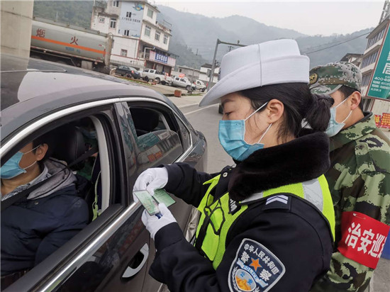 四川新闻网雅安3月3日讯(王超岚 文/图)无论是清晨的路口车辆查缉还是深夜卡点坚守,无论是不畏危险冲锋一线还是任劳任怨做好后勤保障,无论是深入前线采集高质量的工作照还是坐在办公室坚守“第二战场”。天全县公安局交警大队的她们,用娇小的身躯映衬出伟大的职业精神,她们看似柔弱面对疫情却丝毫不输男儿本色。 她们是“疫线先锋”