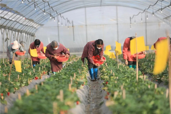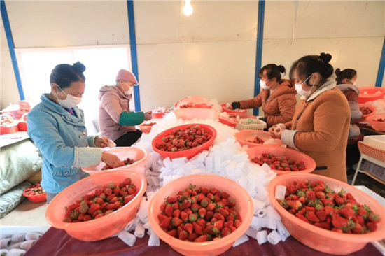 汉源阳光草莓:在汉源县罗博士草莓采摘园里,工人们戴好口罩,做好防护措施,每天采摘1000斤新鲜草莓送到成都伊藤洋华堂销售。汉源县力升家庭农场工人将草莓进行分选、包装,3000斤草莓将发往贵州贵阳的水果市场。
