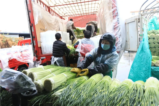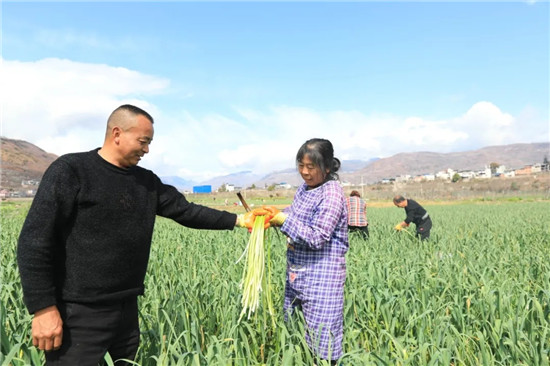 汉源蒜薹:家住汉源县九襄镇清泉村的张春,正在地里打蒜薹。他表示,收获即是幸福。在九襄镇甘溪坝蒜薹交易市场,一车车汉源蒜薹正在装车准备发往南京。