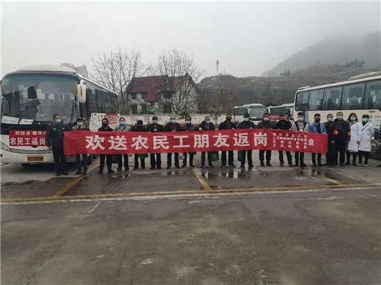 当天上午,经过测体温、消毒、安检、规范佩戴口罩等多个流程,15名农民工登上“春风行动”返岗专车。