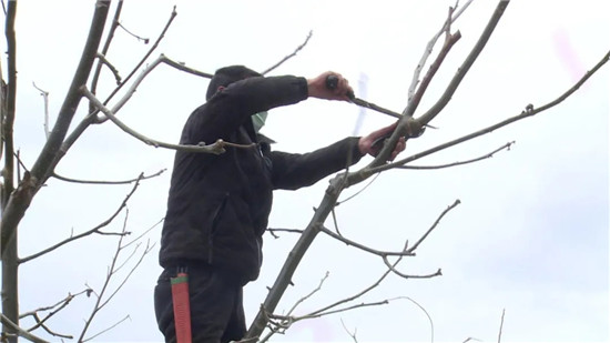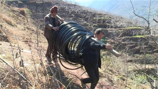 在富乡乡双江村,村组干部深入田间地头,一边给村民宣传疫情防控知识,一边动员村民抢抓农时,做好春耕生产。近年来,富乡乡发展了甜樱桃、花椒、苹果等经果林产业16000亩,因山地较多,春冬季节果树用水灌溉不便。