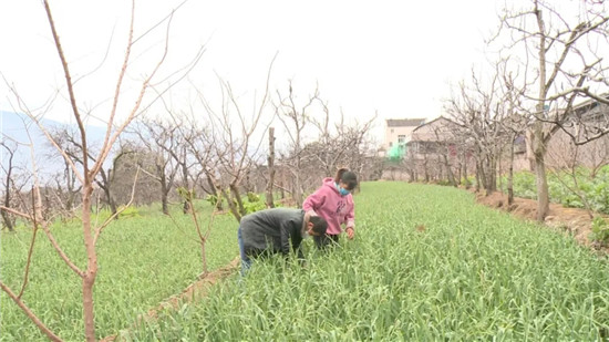 今年,双江村60户村民在乡党委政府的号召下,自筹资金、自发组织安装农田用水灌溉管道,引东风堰水灌溉果树。进入春季,春耕生产一刻不能停、一样不能误,蒜薹采收正当时,甜樱桃、苹果树也正值修枝、拉条、施肥的时节,村民们在春天忙碌着,也从中收获着幸福。