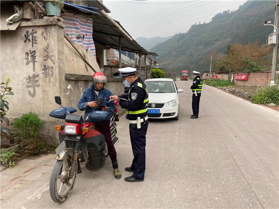 四川新闻网雅安3月13日讯 为切实预防重特大交通事故,筑牢交通安全“防线”。近日,荥经县公安局交警大队民警来到花滩镇星星村,通过发放传单、口头宣传等方式,向村民和广大驾驶员开展交“七进”通安全宣传。