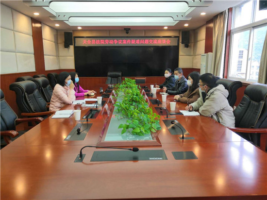 四川新闻网雅安3月13日讯 近日,随着新冠肺炎疫情防控工作的不断持续和企业复工复产进度的加快,特殊的劳动争议纠纷开始显现苗头。天全县人民法院充分发挥审判职能,加强劳动争议仲裁与诉讼衔接机制建设,主动邀请天全县人社局就今后劳动争议纠纷中会出现的新情况进行预判研讨,天全县人民法院分管副院长、县人社局副局长及双方单位相关业务骨干参加交流座谈。