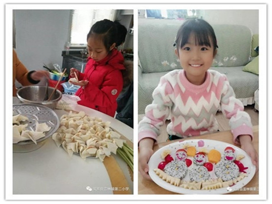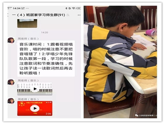 (3)线下教学抓辅导。分3个学段制定课表,通过“两群一号”、邮寄等方式告知学生及家长。部分家庭由于父母上班、外出打工等原因,导致线上学习困难。针对此类学生,学校采用电话辅导、送教上门等方式保障居家学习全覆盖。落实10名青年教师对留守儿童、贫困家庭学生,提供“一对一”辅导,每日下午5时,提前将第二日的居家学习表发到班级家长群,第一时间告知学生们学习内容及需要完成的作业,让双职工家庭、外出务工家庭能提前帮助学生做好第二天学习安排,减少家长们的担忧。 (4)“五育并举”助成长。学校将“五育”融合到居家学习之中,音体美每周课程安排4课时,绘画、唱歌、居家锻炼样样不缺。安排“居家小劳动”课程,让学生们课余时间帮助父母做家务。20余天的居家学习,学校组织厨艺秀、经典诵读、手工展示、“武汉加油、雷锋精神、向榜样致敬”主题手抄报、居家植树等活动,让“五育之花”助力学生全面发展。