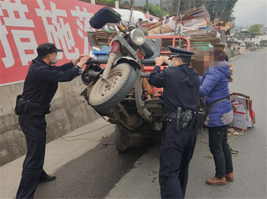 四川新闻网雅安3月18日讯 天全县公安局始阳派出所践行“枫桥经验”, 及时帮助一辆因“满载而归”而翻车的三轮车,获得群众赞誉。