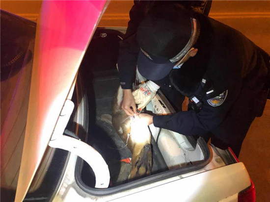 四川新闻网雅安3月23日讯 (魏楠 曹宇清 文/图) 3月19日22时许,芦阳所接群众傅远志报警称:在芦山中学旁的铁栅栏处发现一直腿部受伤的野生动物,请出警。