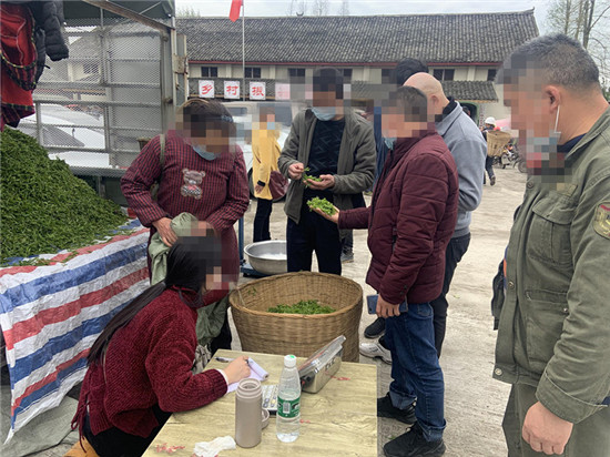 四川新闻网雅安3月26日讯(王超岚 文/图)为更好的推进幸福村高山茶叶发展,增加广大茶叶种植农户的收入,为脱贫攻坚、新农村建设打下坚实的基础,天全县公安局驻乐英乡幸福村驻村工作队于近日带领幸福村两委、茶叶种植大户和贫困户代表前往名山区、雨城区考察茶叶交易市场,寻求茶叶批发商合作。