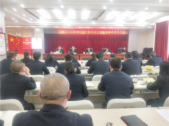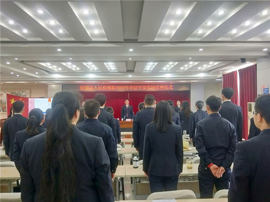 四川新闻网雅安4月1日讯 3月26日,汉源县人民检察院召开全院干警大会,举行中层干部任职宪法宣誓仪式和集体廉政谈话。此举标志着汉源县检察院全面完成内设机构改革,至此,5个内设机构设置到位,中层干部任命到位,各部人员配备到位,科学的排兵布阵为2020年度汉源检察工作发展奠定坚实的基础。
