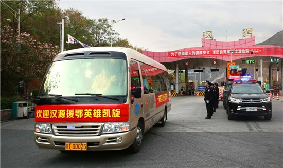 3月31日17时35分,汉源县援鄂医疗队“五朵金花”顺利抵达高速公路汉源北收费站,“热烈欢迎汉源援鄂英雄凯旋!”“平安归来!健康归来!载誉归来!”“致敬最美逆行者”等标语迎风招展,从汉源北高速公路收费站到环湖路,再到万合大酒店,汉源市民自发在路边挥舞着手中的五星红旗,呐喊着“欢迎英雄回家”,用最隆重的方式,向“最美逆行者”致敬,欢迎她们回家。