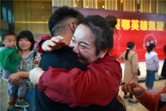 仪式现场,“五朵金花”终于与家人见了面,她们与家人紧紧相拥,相视而笑。这一刻,汉源县援鄂医疗队队员龙秋、何交、陈丽娟、夏雅梅、曹梦诗顺利归家。