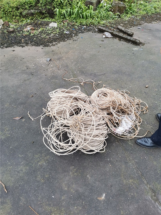 近日,芦山县公安局龙门派出所民警在对金龙山原川西监狱监区废弃房屋进行排查时,发现导火线500余米,民警及时进行了查收并交给县局治安大队。