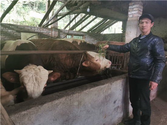 四川新闻网雅安5月7日讯(聂蓉 蒲久欣 王梦倩 文/图)芦山县太平镇春光村村民闫大平,2013年被查出患白血病,“4·20”芦山强烈地震房屋严重受损,让这个已经一贫如洗的家庭雪上加霜,闫大平也成了建档立卡贫困户。在党和政府的关怀帮扶下,他重拾生活信心,克服病魔和精神压力,靠辛勤劳动“斩断穷根”,努力实现人生价值。 今年46岁的闫大平,在2013年查出患白血病后,虽然在亲朋好友的帮助下及时进行了治疗,但后续高昂的治疗费用还是拖垮了这个本不富裕的家庭。2014年,依靠政府补助和自身努力,闫大平一家异地盖起了砖房。在闫大平的脑海中,始终认为凡事都要靠自己,尽管身患重病,家境贫困,但这些并没有成为他消极生活的理由。 “我2013年得了白血病,到处治病把家里面的积蓄花得差不多了,“4·20”芦山强烈地震,修房屋又贷了一部分款,但是在这几年当中,村组干部也来鼓励我,希望我能努力勤奋,在身体条件允许下能多一点是一点,给老婆也减轻了一定的负担,想以后的日子过得好一点。”闫大平说。 在了解到闫大平一家的情况后,太平镇驻春光村干部主动上门走访,详细询问他后续治疗费用、生活中的困难和自身脱贫思路,并根据他的实际情况,利用帮扶政策帮助他搞起了肉牛养殖。 “针对闫大平的情况,我们积极帮助他发展产业,争取了医疗补助,进行了人居环境改造、小额信贷等政策性的补助,去年我们帮他争取了小额信贷五万元,邀请了县畜牧站的专家指导他发展养牛,还争取了产业补助金六千元。”太平镇脱贫办干部、驻村干部高建介绍说。 经过几年的不断摸索,闫大平的养殖事业也渐渐步入正轨,如今,肉牛存栏量从刚开始的2头发展到了11头。凭着一股自强不息的精神,闫大平的努力获得了回报,一家人的生活也逐渐好转。 “今年牛价的行情在去年的基础上还是算比较好,我去年喂了十头,今年喂了十一头,大概拿现在的行情来算,年底纯收入也许要收入三万。我还想再去买两头母猪来喂,增加我的养殖规模,到年底估计两头母猪大概要增加两万的经济收入,在去年的基础上就算比较乐观美满了,想经过我的努力,让我们的日子过得越来越好。”闫大平高兴地说。