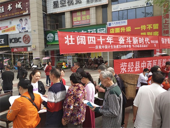 四川新闻网雅安5月29日讯 为庆祝中国计生协会成立40周年和计生协会第22个“会员活动日”,5月28日上午,县卫生健康局组织县人民医院、县中西医结合医院、县疾控中心等下属卫生健康单位以及严道街道办等,在财富中心广场开展以“壮阔四十年 奋斗新时代”为主题的宣传活动。