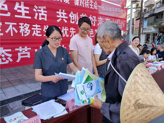 四川新闻网雅安6月8日讯(张冬萍 文/图)6月5日,在第49个世界环境日来临之际,芦山县人民法院联合县生态环境局在芦山县老城区十字街集中开展“6.5世界环境日”宣传活动。 活动中,芦山县人民法院干警们通过设立法律咨询台,悬挂环保宣传横幅,向群众发放环保宣传手册、环资犯罪典型案例及法律法规汇编等宣传资料,采用面对面的方式,现场向广大人民群众宣传野生动物保护、环境保护相关法律知识,营造环保法治氛围,积极引导人民群众树立环保理念,从身边小事做起,共同参与蓝天保卫战,为建设秀美芦山,美丽四川贡献自己的力量。 芦山县人民法院坚持严厉打击环境资源犯罪和修复生态并重,2017年以来,共审结环资刑事案件26件33人,其中滥伐林木17件22人,非法采伐国家重点保护植物3件4人,非法狩猎1件1人,非法猎捕珍贵、濒危野生动物1件1人,非法捕捞水产品1件2人,非法收购珍贵野生动物制品2件2人,非法采矿1件1人,同时引导、督促涉案人员,积极主动采取“补栽补种”“劳务代偿”“生态放流”等方式,对受损生态环境进行司法修复,改善水质及水域环境,维护生物的多样性及平衡性。 |