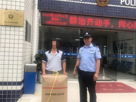 接警后值班民警庚即赶到现场,经询问得知报警人黄某今天在东风路不慎将自己在残联领取的残疾人轮椅丢了,在了解相关情况后,民警通过调看社会监控和指挥中心天网、走访周边群众,经过近4个小时艰苦排查,最终在东风路一铺面外找到了黄某遗失的轮椅,后将遗失的轮椅归还于黄某。黄某对该所民警高度负责的精神予以了肯定并表示感谢。