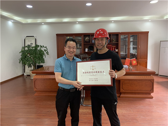 四川新闻网雅安6月11日讯 6月9日,天全县人民法院党组书记、院长秦明文一行到天全县重点企业——四川雅安安山钢铁有限公司走访调研企业法治化营商环境构建相关工作。 秦明文院长首先向该企业负责人授予“法治化营商环境联系点”牌匾,并赠送《民营企业常见法律风险防控指南》,而后和该企业管理人员进行深入交谈,详细了解企业生产经营状况、发展愿景和发展中面临的困难问题,认真倾听和收集企业对法院服务保障民营经济发展和构建法治化营商环境方面的意见和建议。