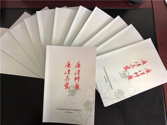 四川新闻网雅安6月28日讯 又是粽子飘香时,又是端午佳节至。农历五月初五,是中国传统节日——端午节。在“端午节”到来之际,芦山县人民法院纪检监察部门向全院干警家属送出了一份特别的问候——《廉洁修身 廉洁齐家》。这本宣传册可谓是“小册子”“大内容”,书中包含了致干警家属的一封信、节庆假日纪律作风“十个严禁”等规定。信中对干警家属送去深深的祝福,感谢干警家属对法院工作大力支持,同时提醒干警家属不仅做好“贤内助”,更要做好“廉内助”。