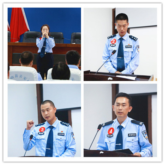 四川新闻网雅安7月2日讯(竹权炯 王芦蓉 文/图) 为纪念中国共产党成立99周年,芦山县公安局于7月1日上午9:00在县局六楼会议室举行了“初心不改,使命担当,让警心在党旗上飞扬”主题诗歌朗诵比赛。县局党委副书记、政委陈雍,党委委员、副局长周旭、党委委员、副局长张浩江、驻局纪检监察组组长彭文涌以及各支部全体党员民、辅警参加了活动。 此次比赛是以支部为单位,通过支部选拔最终确定13名参赛选手。按照活动议程,全体人员起立,首先播放了《国歌》,紧接着陈雍同志作了开场致辞。比赛由此正式拉开帷幕,选手们一个个警容严整,精神饱满,一首首诗歌朗诵的铿锵有力,声情并茂,每一个作品都主题鲜明,颂扬对党的忠诚和无限热爱。经过激励角逐,清仁支部弹唱加朗诵的《当你老了》获得一等奖,交警支部、刑大支部获得二等奖,机关支部、大川支部、太平支部获得三等奖,其余为优秀奖。随后,党委成员为获奖人员进行了颁奖。 活动尾声,陈雍同志做了总结发言,对此次诗歌朗诵比赛做了点评。他指出,全体参赛民警思想重视,准备充分;声情并茂,主题明确;信念坚定,对党忠诚。他要求大家新时代必须有新作为,新时代必须有新气象,在县委县政府的坚强领导下,紧紧抓住机遇,勇于改革创新,勇于应对挑战,善于攻坚克难,奋力谱写新时代中国特色社会主义的芦山公安新篇章!最后在嘹亮的《人民警察之歌》中朗读活动圆满结束。 |