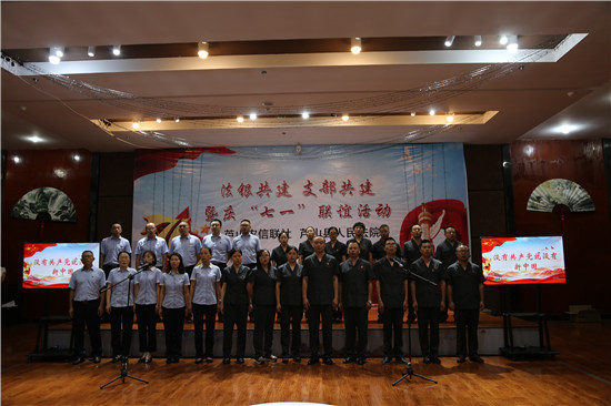 签约和揭牌仪式后,丰富多彩的文艺节目在大家的热烈掌声中拉开帷幕,法银两家参演干警职工以饱满的热情、嘹亮的歌声、深情的朗诵,为大家呈现了:大合唱《没有共产党就没有新中国》、诗歌朗诵《党的赞歌》《中国梦》、小合唱《走进新时代》、双人对唱《不忘初心》、现场诗画表演、人物故事讲述《抗日英雄乐以琴》、独唱《少年壮志不言愁》《红旗飘飘》。文艺活动中途还穿插了党建知识问答环节,整场活动氛围活跃,欢歌如潮,掌声雷动,大家用参演的热情表达了对祖国的真挚情感和对党的热爱。