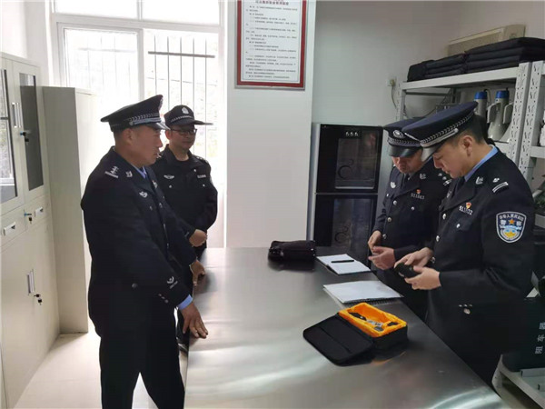 检查组一行实地察看宝兴法院的安检大厅、羁押室、羁押通道、装备室、监控室及枪弹室等重要区域,查阅执法规范化建设工作台账,对司法警察值庭录像进行了抽查,并对司法警察大队执法规范化建设的相关文件资料进行查阅。