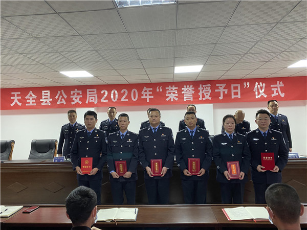 四川新闻网消息 为进一步凝聚警心、激励斗志,不断铸牢公安队伍的理想信念,切实增强民辅警的职业荣誉和归属感。11月20日,天全县公安局隆重举行2020年“公安荣誉授予日”荣誉授予仪式。天全县副县长、公安局党委书记、局长曾勇及全体在家局领导、受表彰人员代表、机关和派出所民辅警职工代表参加仪式。荣誉授予仪式由局党委副书记、政委张宁军主持。